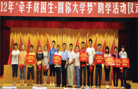 2012年9月5日,在東港區(qū)慈善總會(huì)2012年慈善助學(xué)金行動(dòng)中再捐資12萬元,幫扶60名即將邁進(jìn)大學(xué)校門的貧困學(xué)子圓了大學(xué)夢。