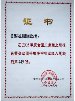 ·2006年9月,全國工商聯(lián)上規(guī)模民營企業(yè)調(diào)研排序中營業(yè)收入總額列第449位