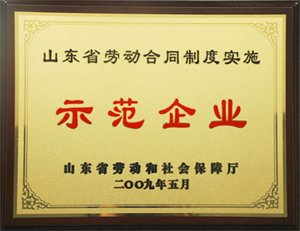 ·2009年5月,被評為:山東省勞動合同制度實施示范企業(yè)