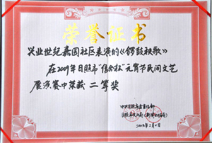 ·2009年2月,2009年日照市“信合杯”元宵節(jié)民間文藝展演賽中榮獲二等獎
